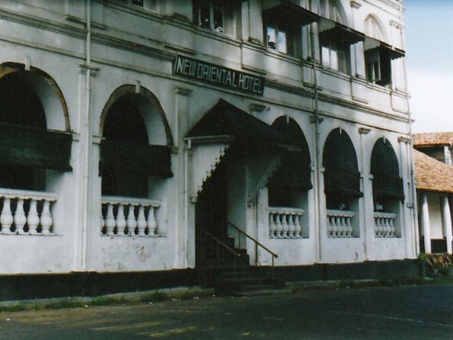 | ゴール旧市街。 | 絶対に泊まりたかった宿、ニューオリエンタルホテル。 この建物は400年前のもの。 1泊36ドルですが、この街の最高級。 年季の入ったボーイさんや、1階のホールのような レストランでいただくカレー、紅茶は最高です。 何と、アマンに買収されて、今はアマンリゾートに 変わっています。もう高くて泊まれない・・・ |