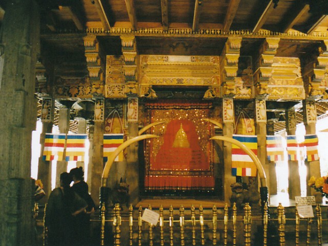 | 仏歯寺の内部。象牙。 内部は非常に立体的で、建物の中に建物が あるような構造。 |