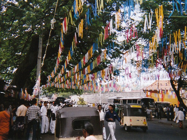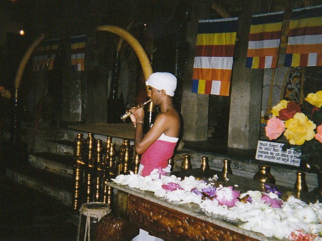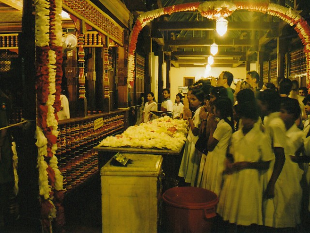 その間、2階では仏様の歯にお参りするために 大勢の人が。スリランカは敬虔な仏教国。 皆本当に信仰に厚いです。 もちろんシンハラ族の方たちですが。 |
